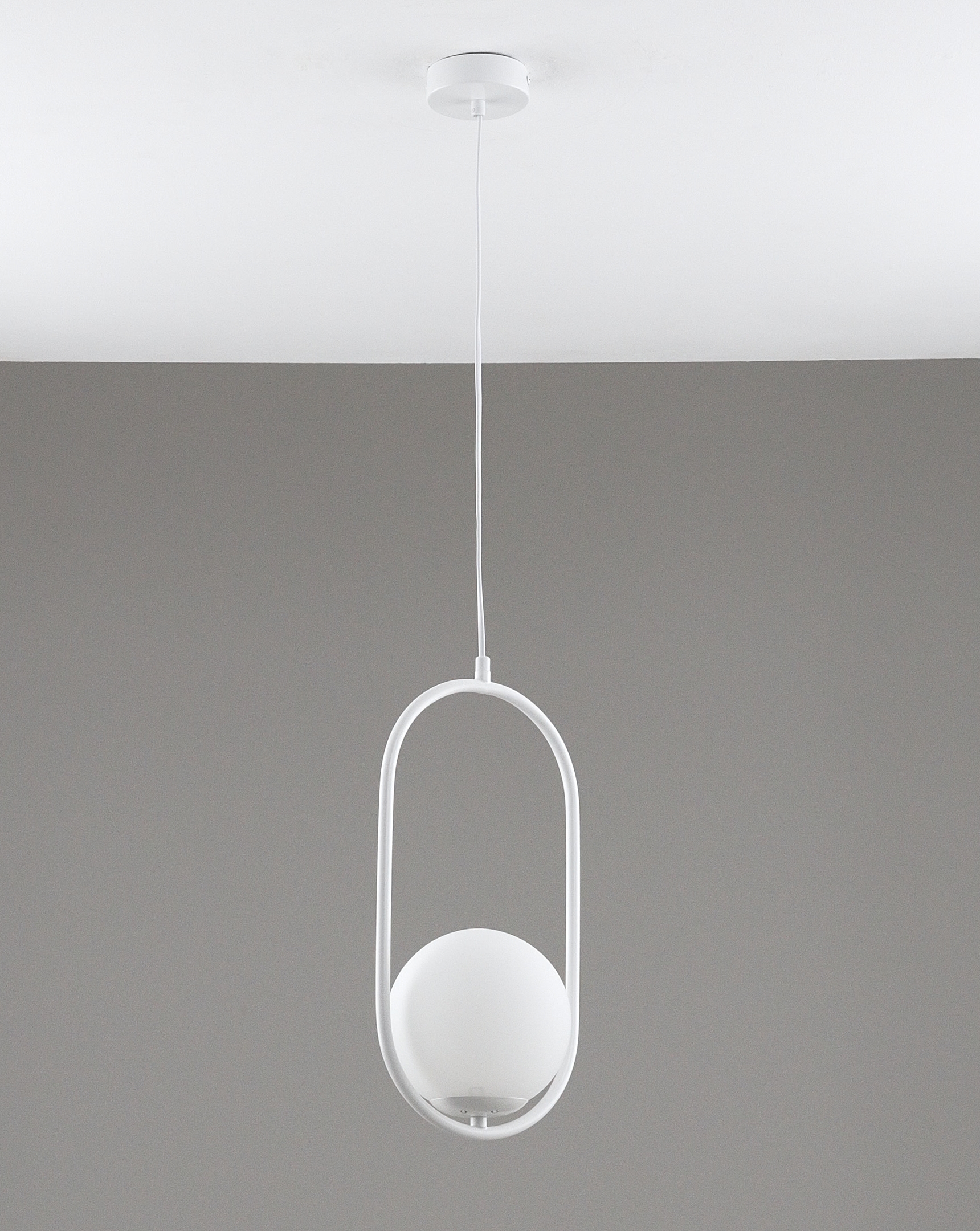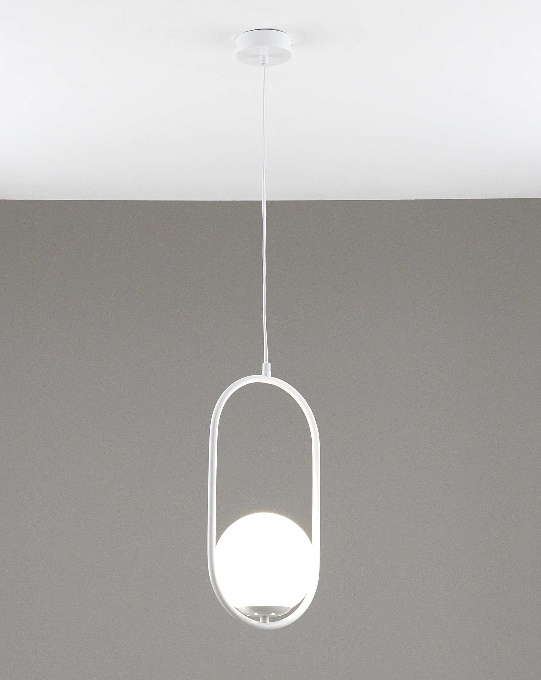 Лаконичный подвесной светильник от итальянского бренда Moderli. Простой и аккуратный дизайн дополнит современный интерьер. Плафон гармонично сочетается с овальным металлическим каркасом, а матовое стекло мягко рассеивает свет. Данная модель подойдет для комнат с высокими потолками, площадь освещения составляет 3 м?. При монтаже высота светильника регулируется.