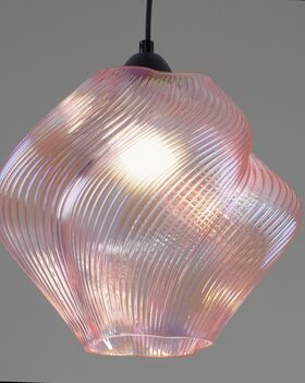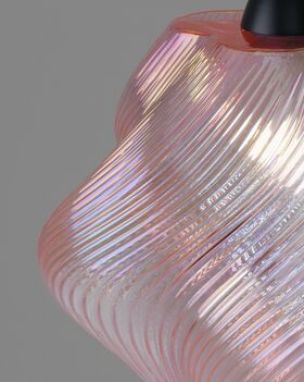 Подвесной светильник Rozy мгновенно привлекает внимание своей органичной формой и динамичным узором на стеклянном плафоне. Волнообразный рельеф придаёт ему живость и пластичность, а розовый оттенок добавляет глубины. Прозрачность материала позволяет мягко рассеивать свет, создавая атмосферу уюта и расслабления.