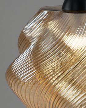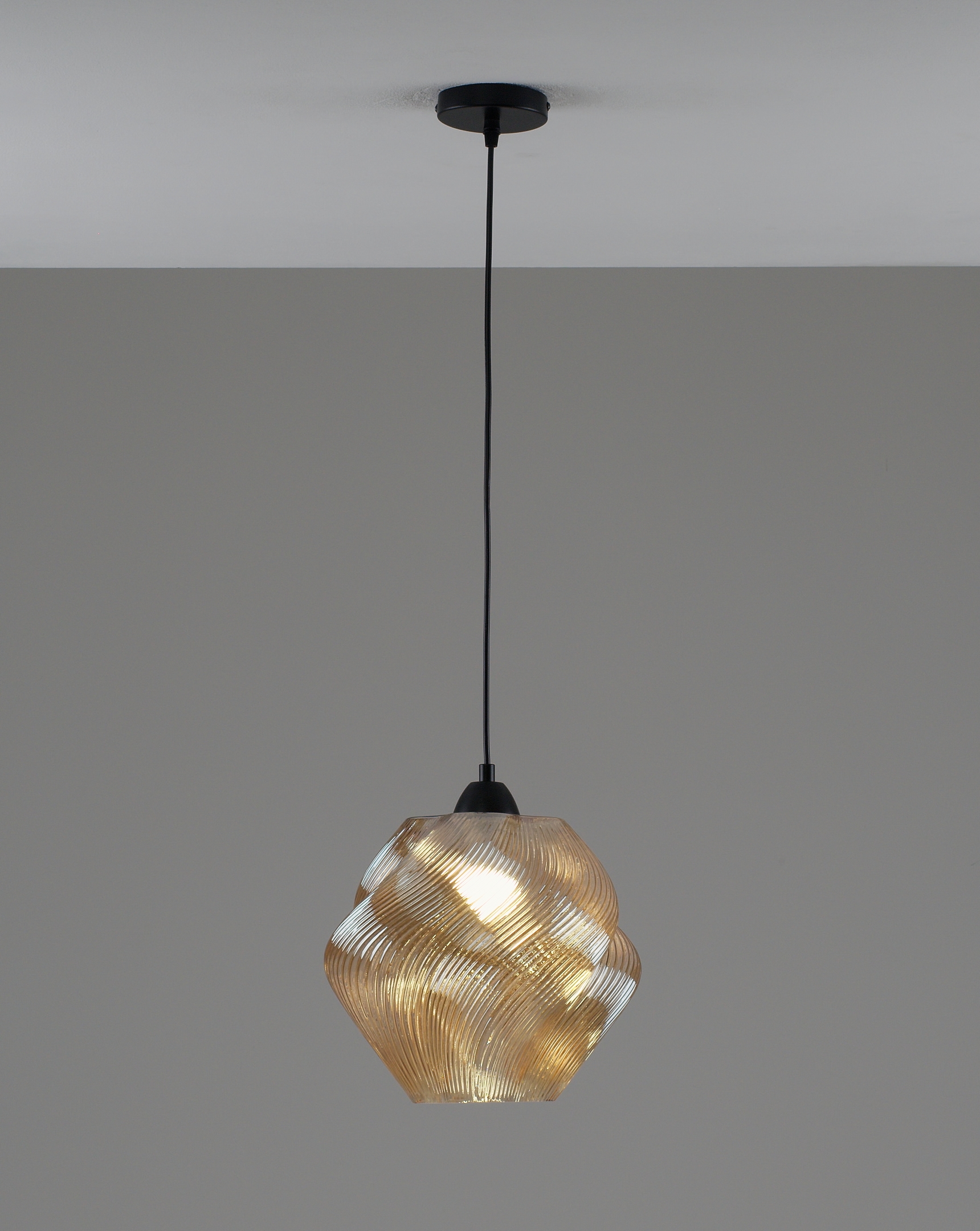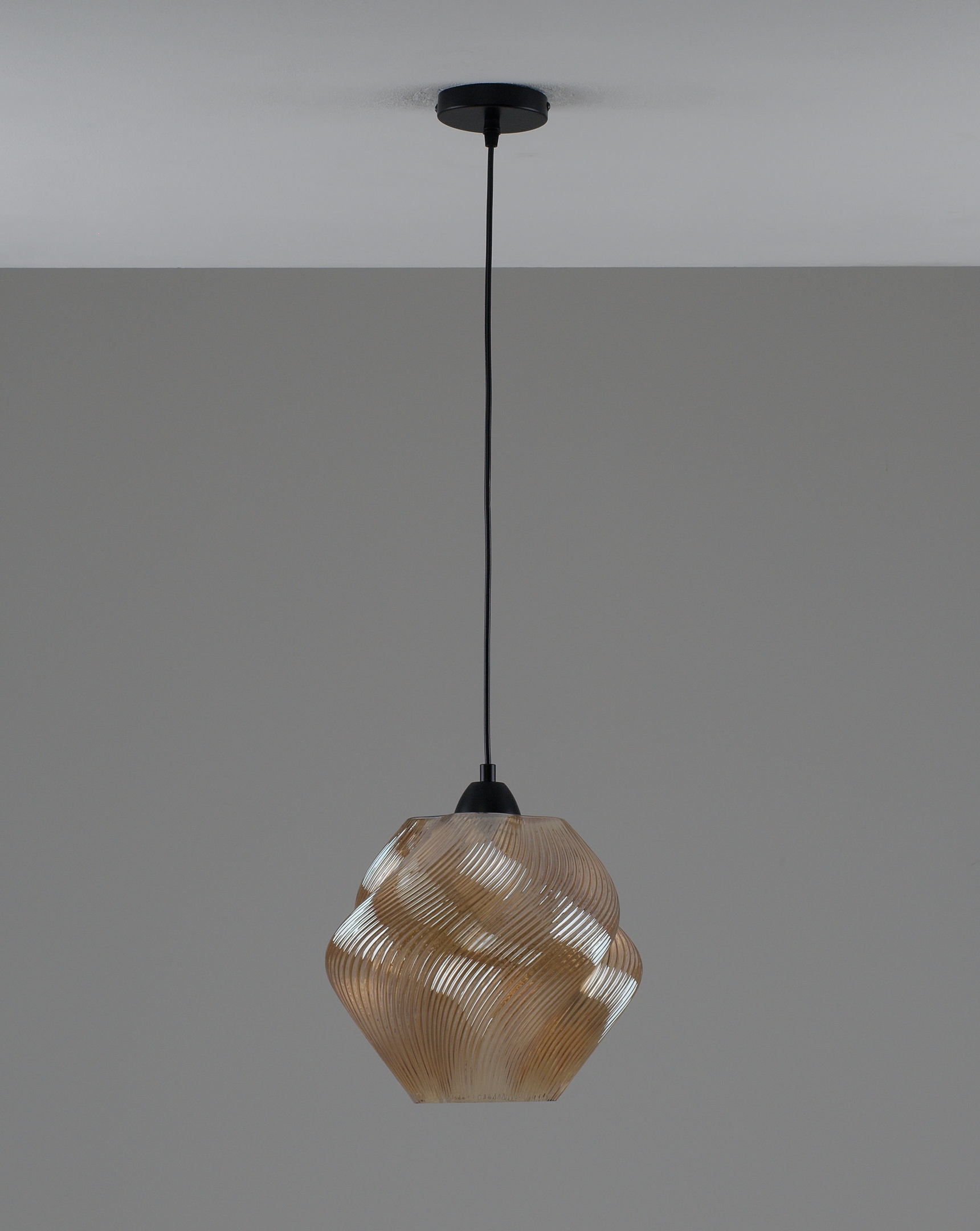 Подвесной светильник Rozy мгновенно привлекает внимание своей органичной формой и динамичным узором на стеклянном плафоне. Волнообразный рельеф придаёт ему живость и пластичность, а коричневый оттенок добавляет глубины. Прозрачность материала позволяет мягко рассеивать свет, создавая атмосферу уюта и расслабления.