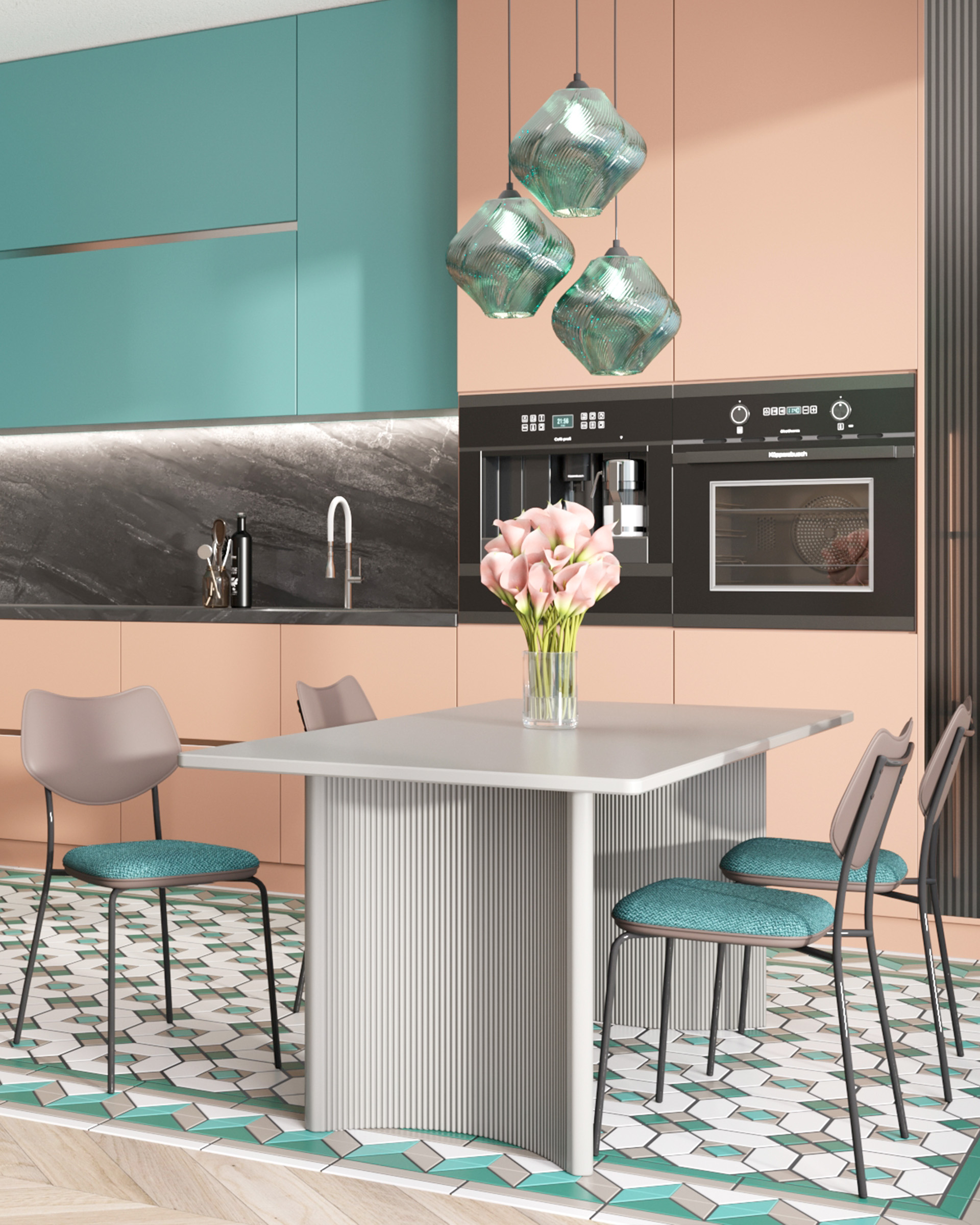 Современный стиль с характером. Модель выполнена в трендовой цветовой гамме, где зелёное стекло сочетается с чёрным металлическим основанием. Круглая форма плафона с плавными изгибами делает светильник стильным акцентом, уместным как в домашнем интерьере, так и в кафе, гостиницах или других общественных пространствах.