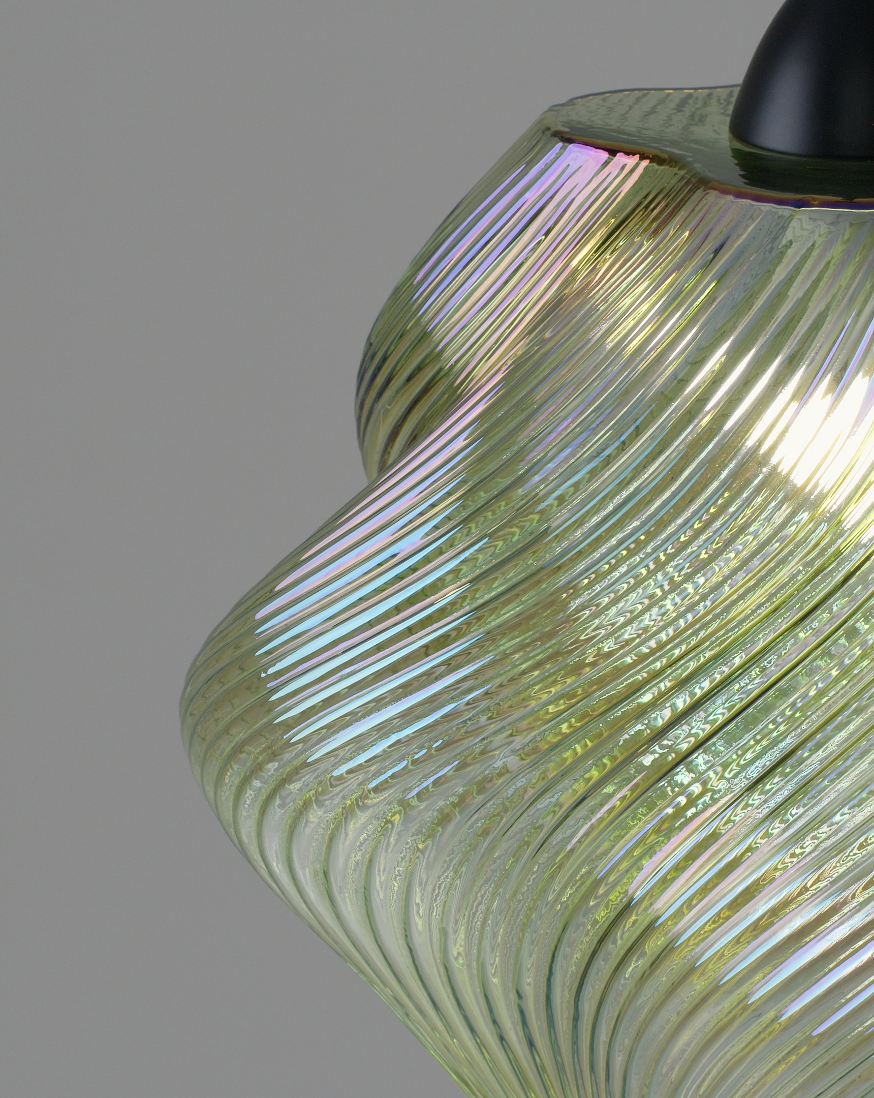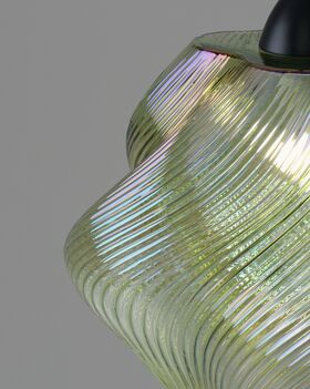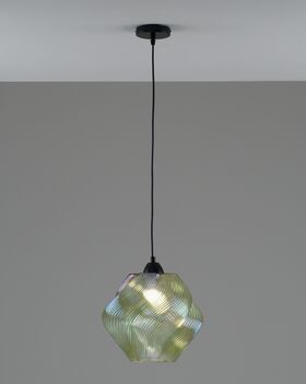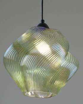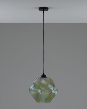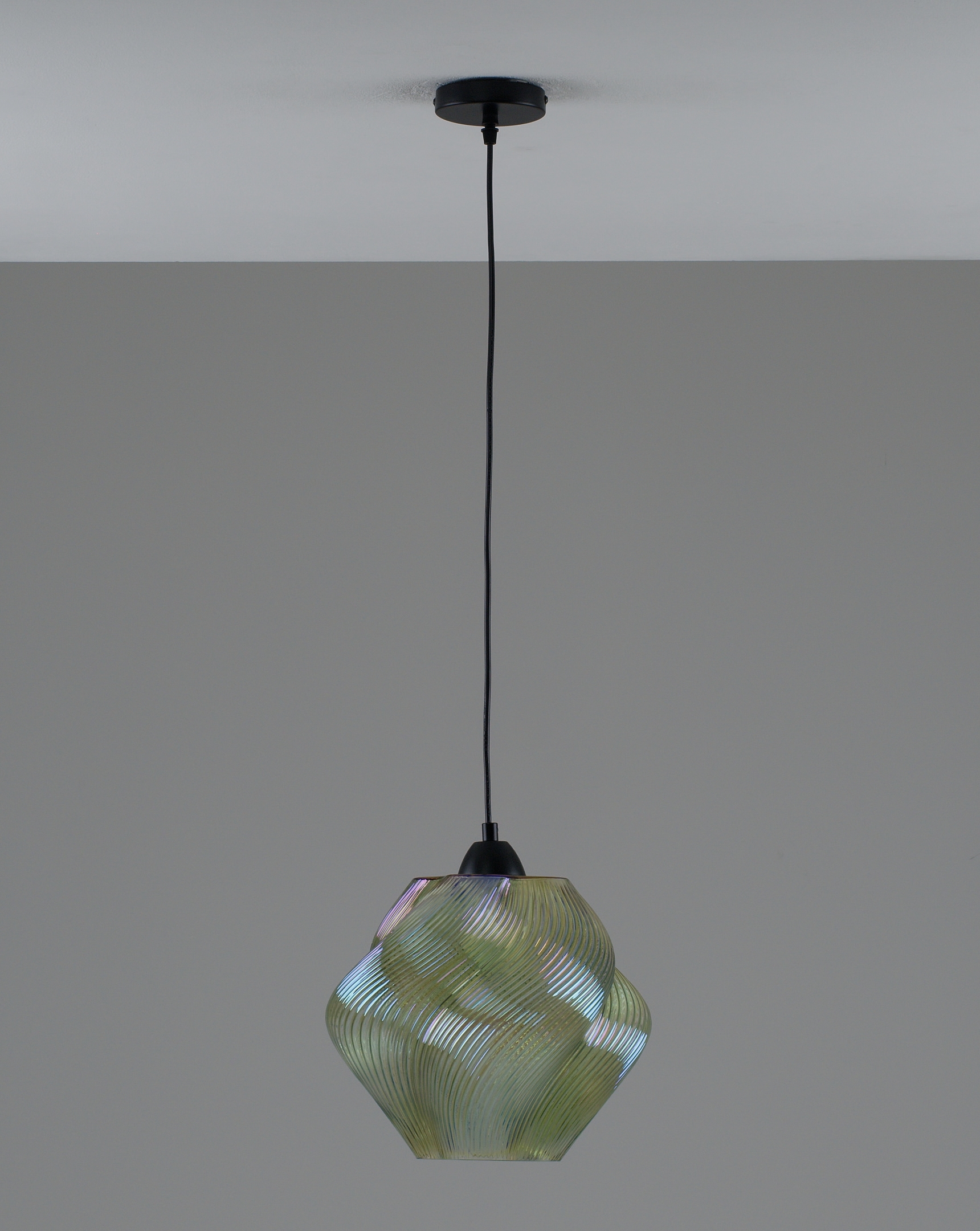 Подвесной светильник Rozy мгновенно привлекает внимание своей органичной формой и динамичным узором на стеклянном плафоне. Волнообразный рельеф придаёт ему живость и пластичность, а насыщенный светло-зелёный оттенок добавляет глубины. Прозрачность материала позволяет мягко рассеивать свет, создавая атмосферу уюта и расслабления.