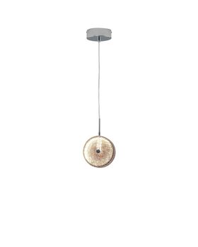 Элегантный дизайн. Подвесной светильник Marnia — это гармоничное сочетание минимализма и изысканного декора. Центральный элемент — круглый стеклянный плафон с рельефной фактурой, создающей эффект мерцающего сияния. Металлические детали с хромированным покрытием добавляют современности и утонченности.