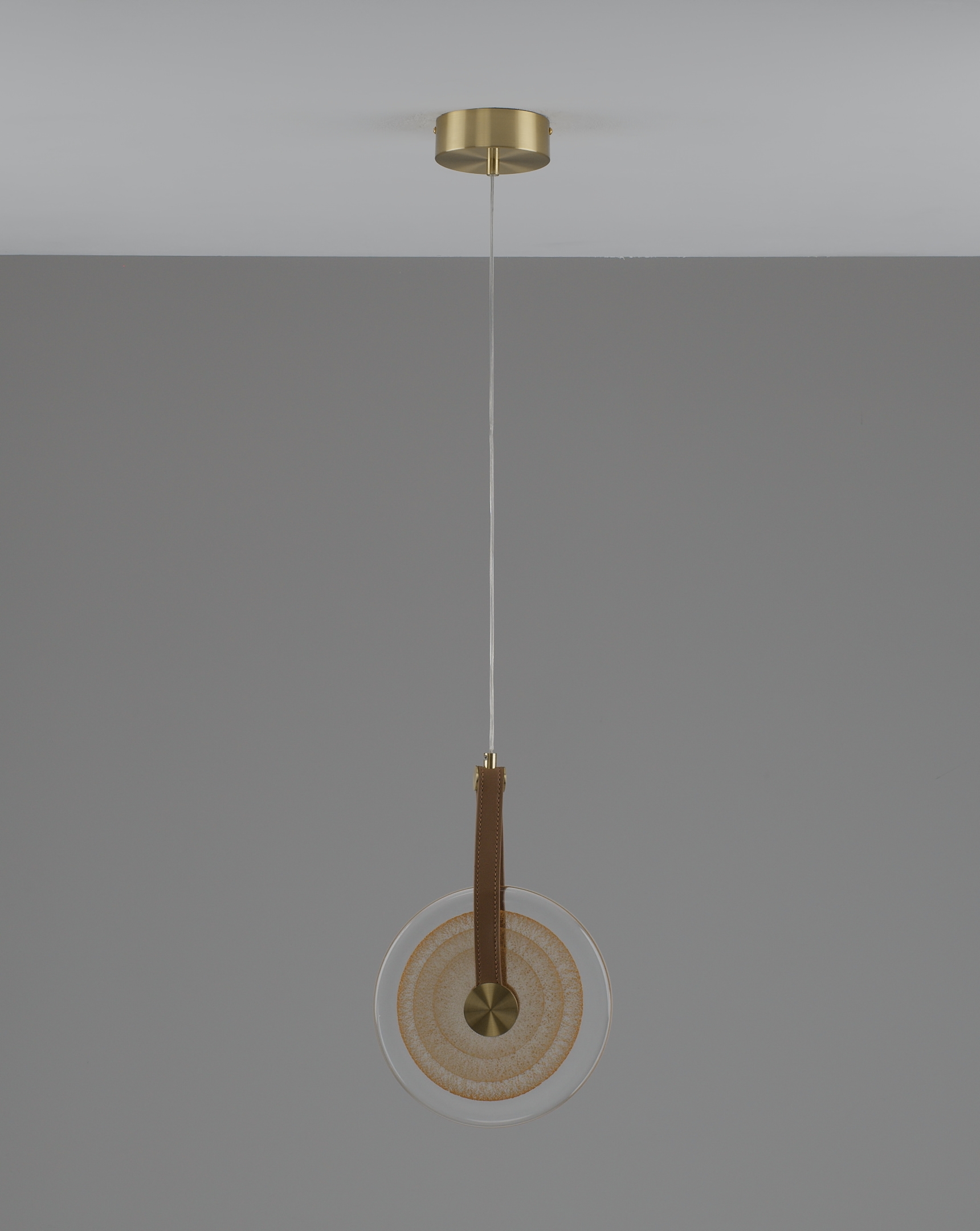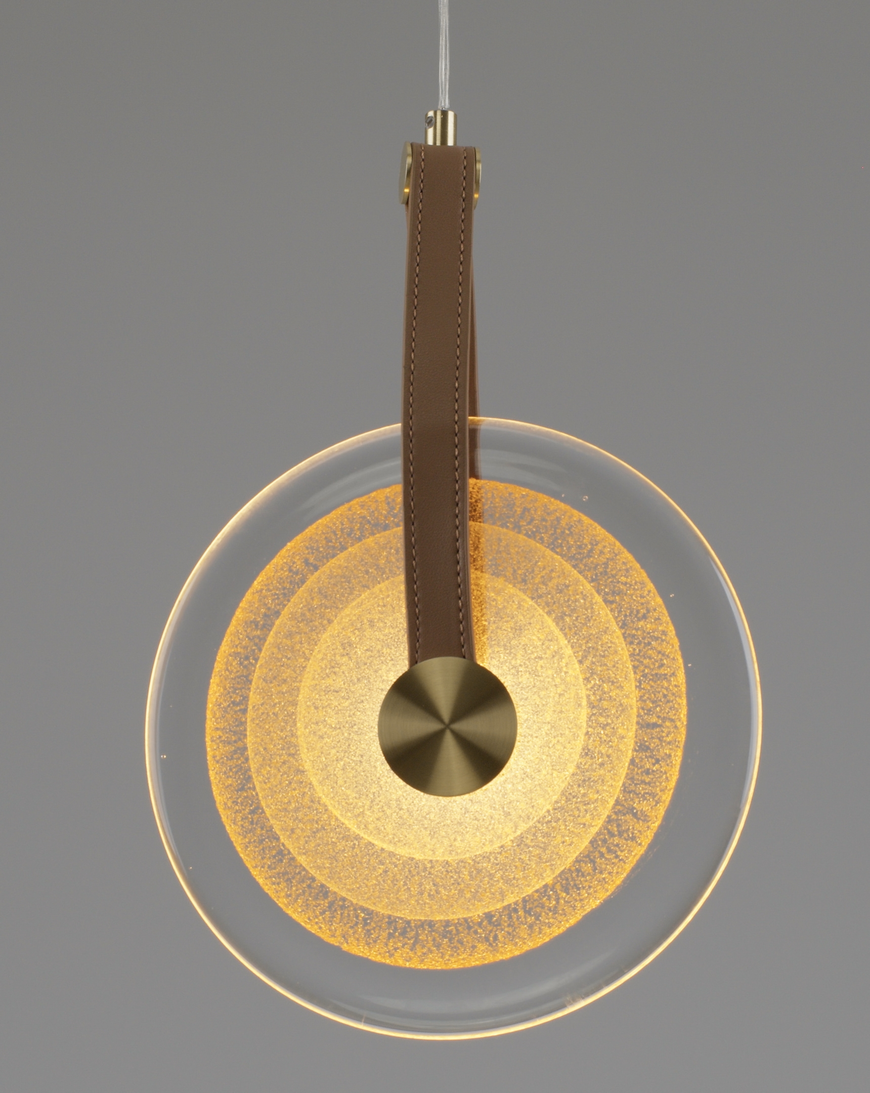 Подвесной светодиодный светильник Moderli V11680-PL Orbique с золотым стеклом и декором из экокожи