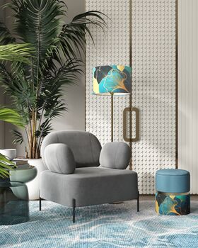 Торшер из коллекции Gingko от итальянского бренда Moderli в дизайнерском стиле. Абажур синего цвета обеспечивает мягкое рассеивания света и создание атмосферы уюта. Корпус из качественного металла золотистого цвета. Нежная цветовая гамма светильника поможет украсить любой современный интерьер и подходит для дополнительного освещения спальни, гостиной и гостевой комнаты.