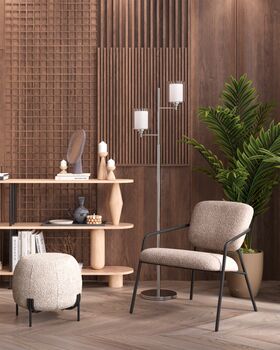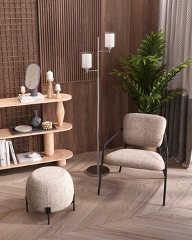 Практичность и безопасность. Торшер оснащён двумя лампами мощностью до 60 Вт каждая, что позволяет эффективно освещать площадь до 6 кв.м. Высота в 165,5 см делает его универсальным решением для чтения, работы или декоративного освещения. Степень защиты IP20 гарантирует безопасность использования в жилых помещениях.