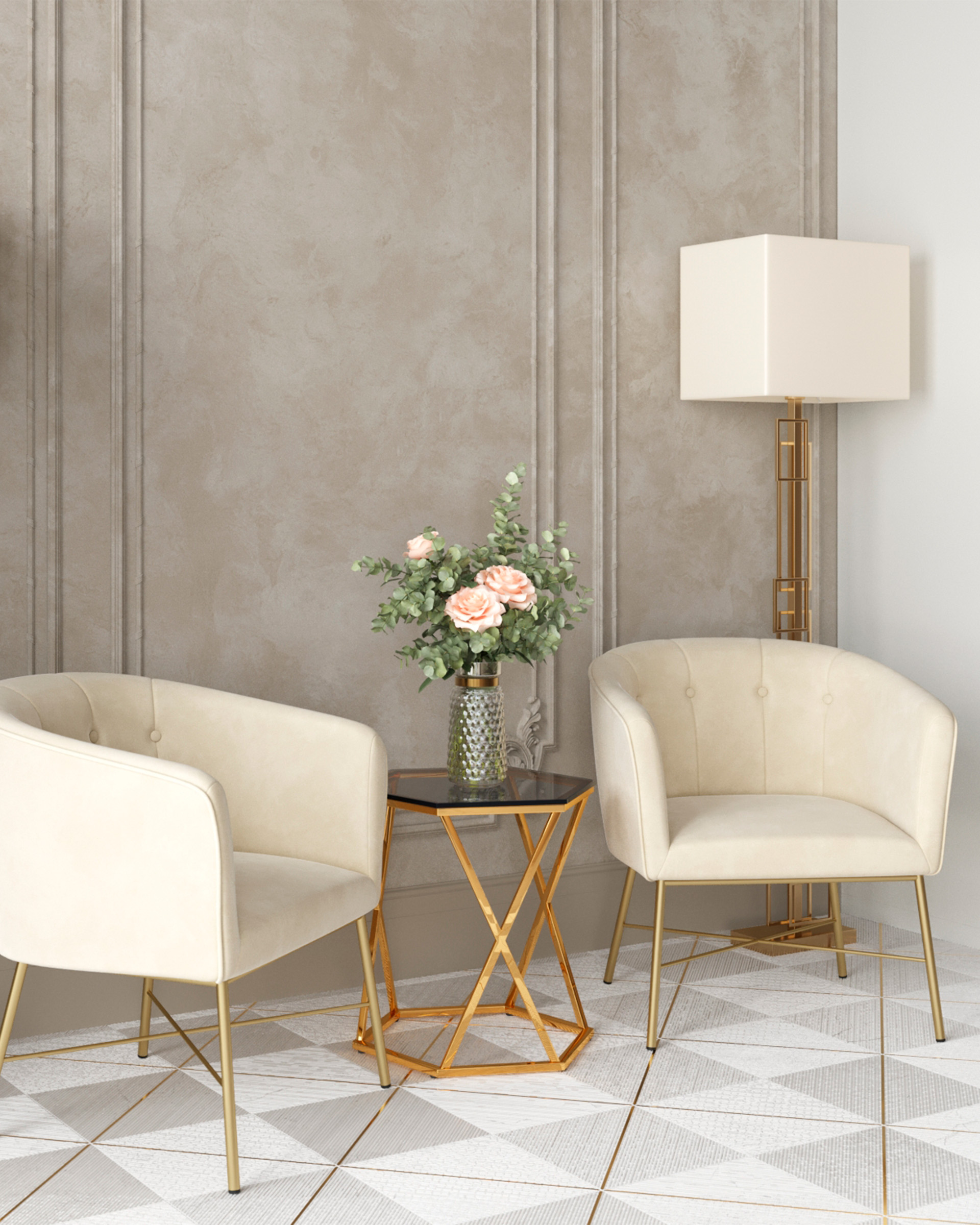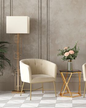 Торшер Nemesia — это элегантное решение для тех, кто ценит оригинальный дизайн и комфорт в интерьере. Корус, выполненный в золотом цвете с глянцевым покрытием, выглядит современно и эффектно. Белый тканевый плафон обеспечивает мягкий и рассеянный свет, создавая уютную атмосферу.