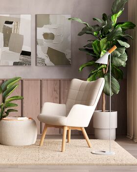 Лаконичный торшер в скандинавском стиле. Плафон выполнен из металла белого цвета с декором под натуральное дерево. Сдержанный дизайн делает серию Turin подходящей под множество интерьеров в современном стиле. Светильник прекрасно дополнит интерьер спальни или гостиной.