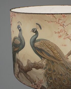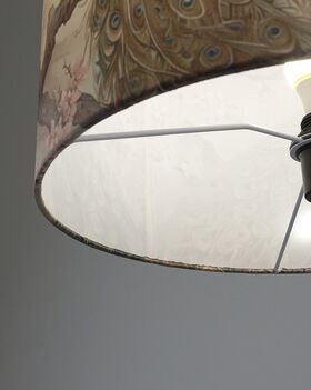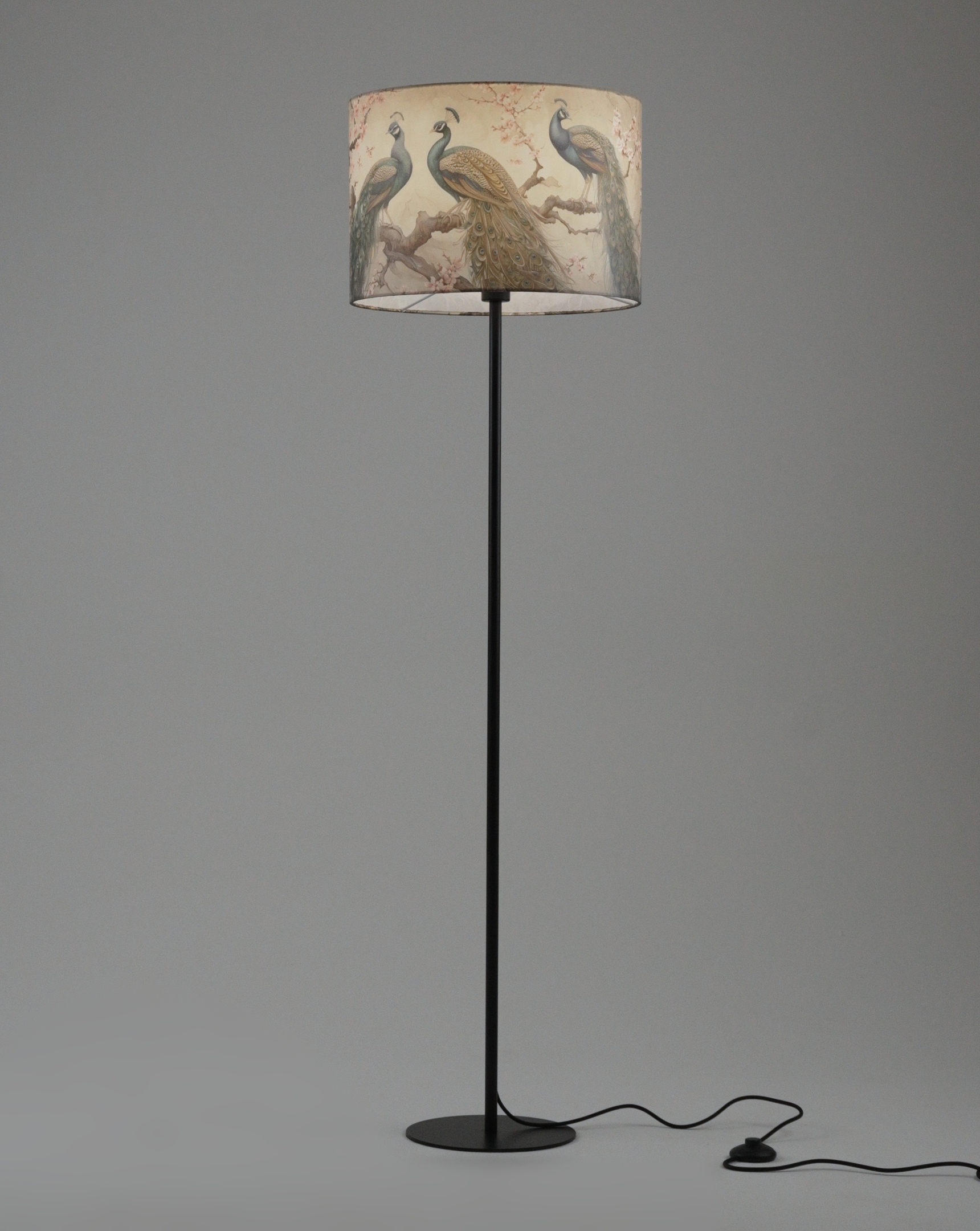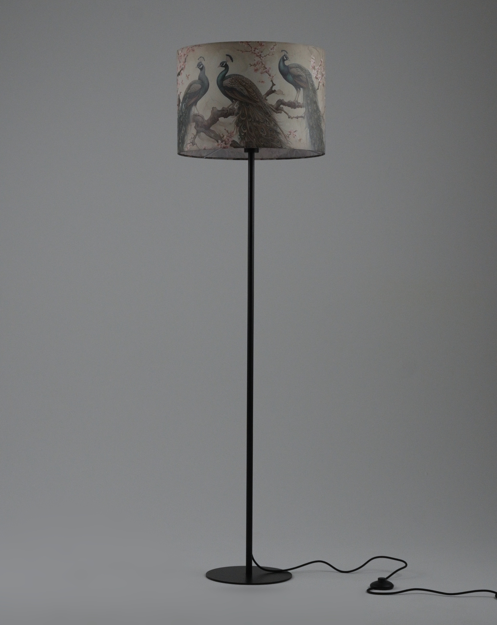 Элегантный торшер из коллекции Strauss от итальянского бренда Moderli сочетает в себе изысканный дизайн и функциональность. Основное внимание привлекает декоративный текстильный плафон с эксклюзивным принтом павлинов на фоне цветущих ветвей — он придает интерьеру утонченность и делает светильник настоящим арт-объектом.