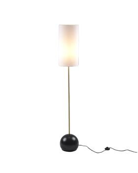 Стильный торшер из серии Flint высотой 160 см. Аккуратный тканевый абажур белого цвета создает мягкое приглушенное освещение. Металлический каркас латунного цвета дополнен устойчивым основанием круглой формы. Современный дизайн торшера украсит любой интерьер спальни, зала или кабинета. В качестве источника освещения подойдут лампы с цоколем Е27.