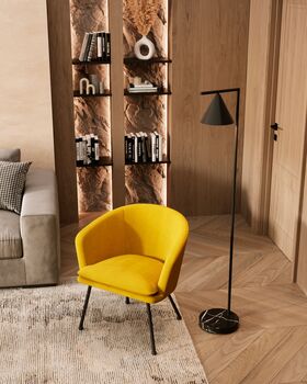 Современный торшер Omaha выполнен из металла с мраморным основанием. Такое сочетание материалов светильника делает его стильным акцентом в интерьере. Прекрасное дополнение спальни или гостиной в стилях лофт и модерн.