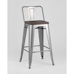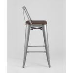 Стул полубарный TOLIX со спинкой серебристый матовый + темное дерево 6 шт.