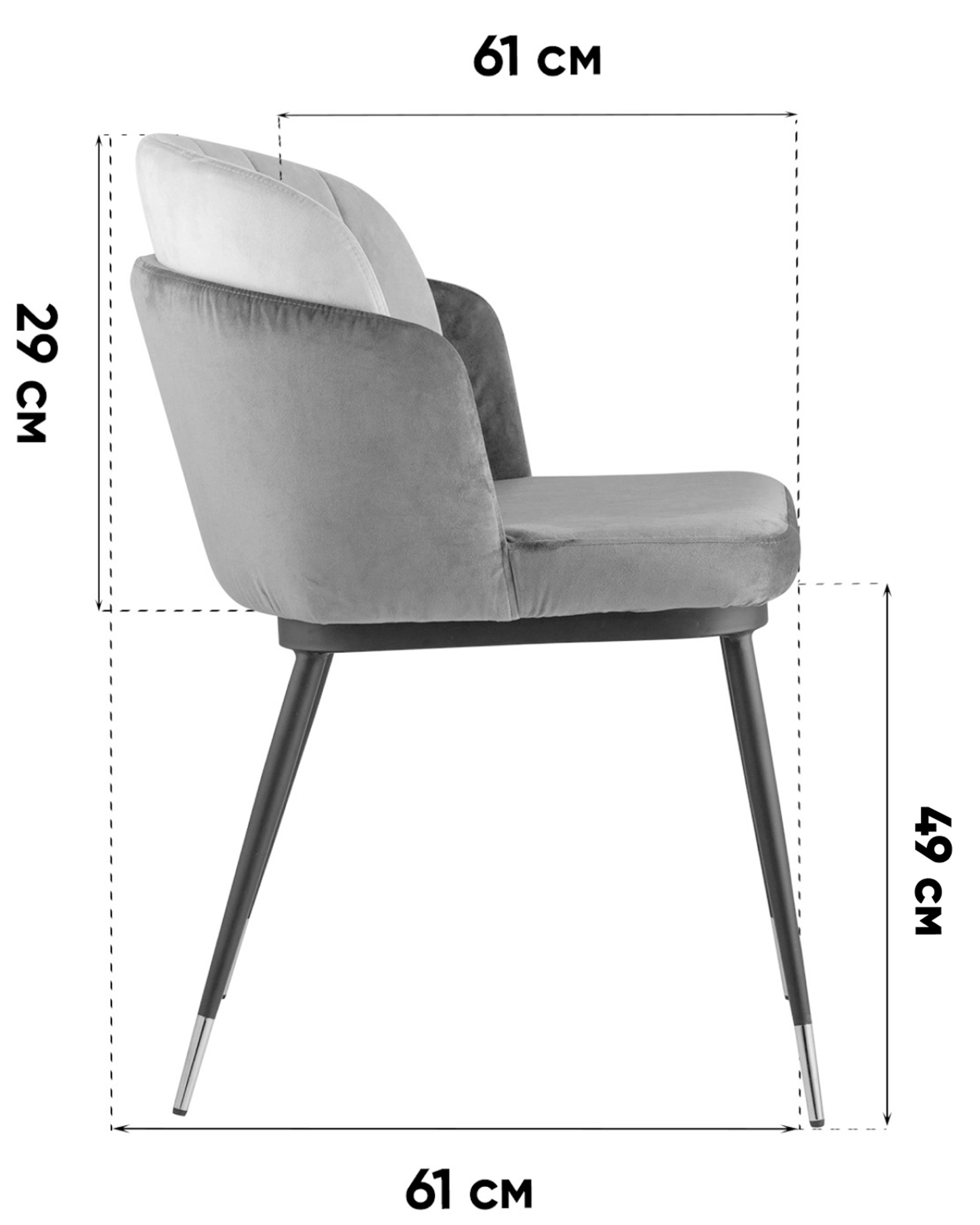 Набор из двух стульев. Мягкий двухцветный кухонный стул с обивкой из велюра. Надежная опора достигается благодаря металлическому каркасу и удобным устойчивым ножкам, красиво украшенным золотом. Спинка состоит из двух элементов, внутренняя часть с вертикальной строчкой.